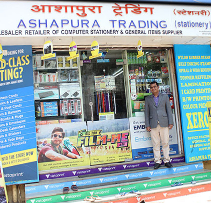 Employees at Star India were witness to the awesome service level Ashapura used to provide. Business started growing on word of mouth publicity. Over the next decade he purchased his own store at Elphisntone employing more than 20 employees. Today his turn over is around 10 crore with 150+ marquee clients to boast about.Ashapura Stationary is the first partner Vistaprint appointed to service growing business owners to professionally promote their business with quality printed and digital marketing products at an affordable price through the offline channel.